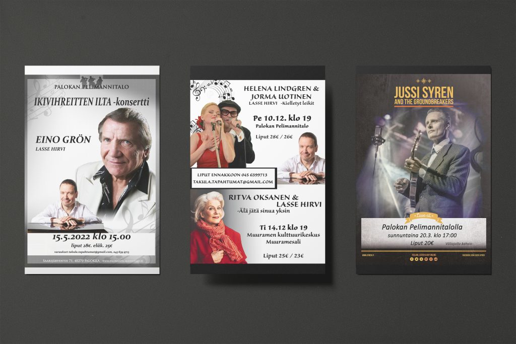 Graafista- ja visuaalista suunnittelua olemme tehneet jo yli 20 vuotta. Suunnittelemme ja toteutamme erilaisia toimeksiantoja. Yksityisen syntymäpäiväkutsun suunnittelusta, messuosastoihin, logon- ja seinäkalenterin suunnitteluun tai yrityksen uuden visuaalisen- ja graafisen ilmeen suunnitteluun, toteutukseen ja painotuotteisiin asti.